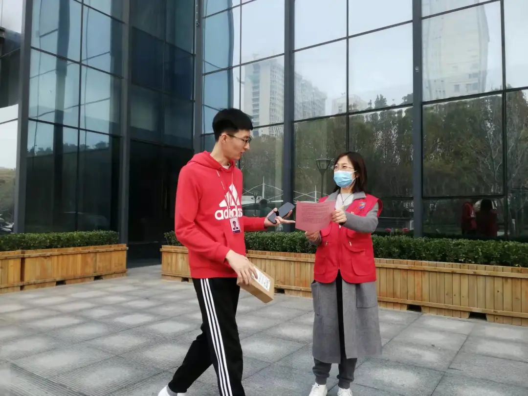 活動中,黨員志愿者們向辦公人員宣傳新冠疫苗接種安全性,并通過現場發放宣傳單、掃描健康碼、測體溫、咨詢服務等志愿服務,加強了辦公人員的疫情防控意識和對新冠疫苗的了解,進一步鞏固了辦公場所疫情防控常態化。