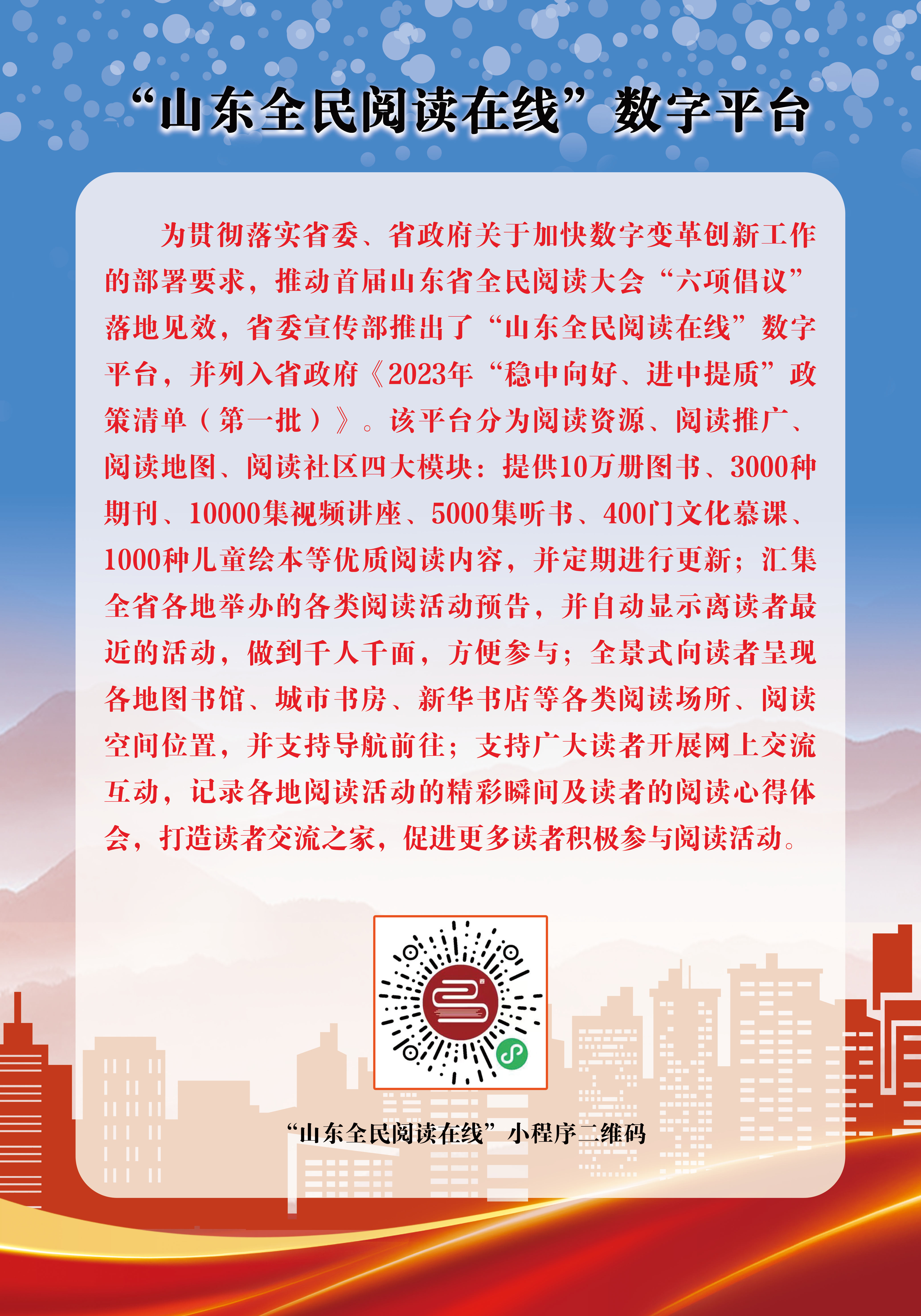 • 省委宣傳部推出了“山東全民閱讀在線”數字平臺。