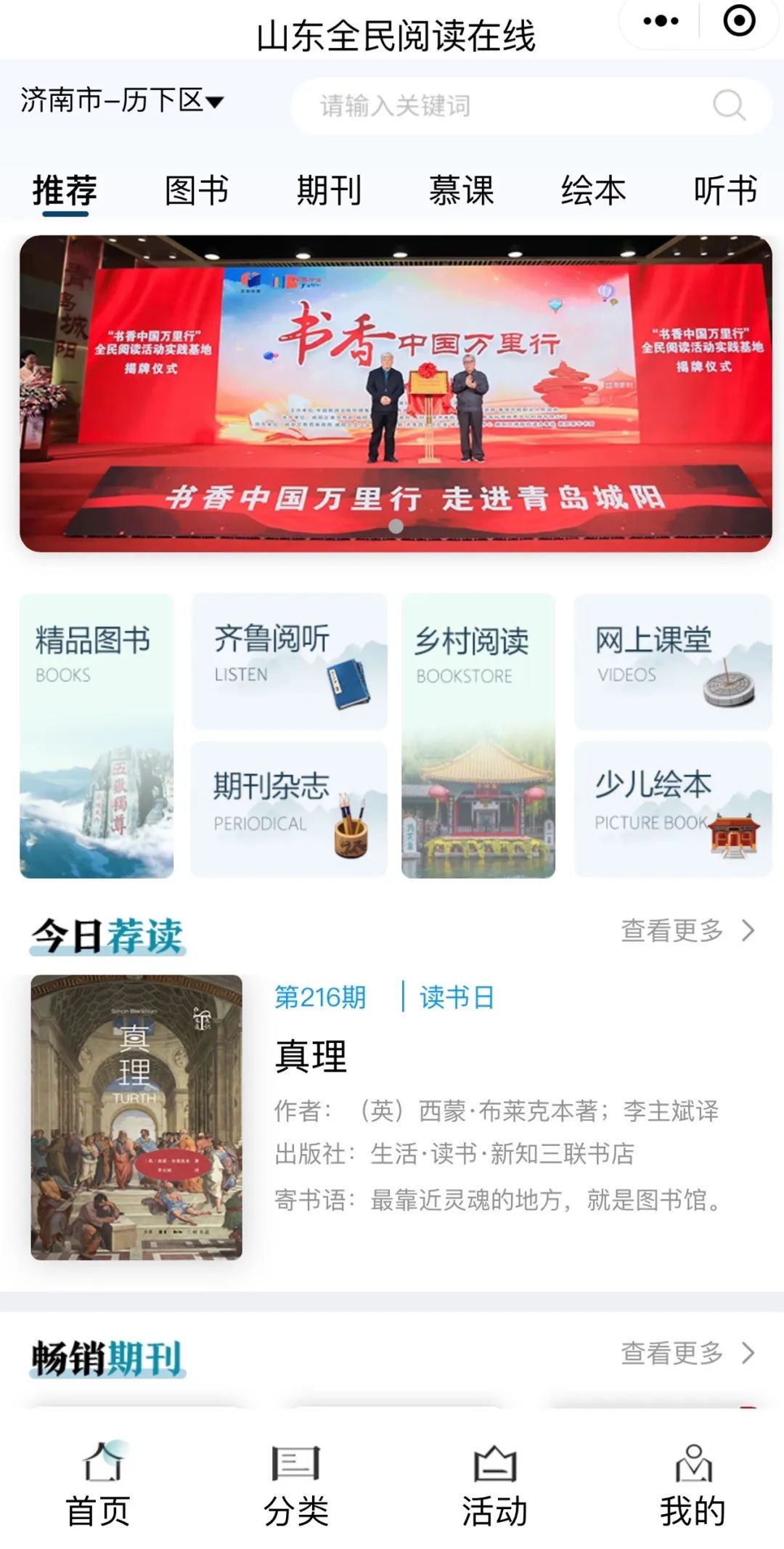 省委宣傳部推出了“山東全民閱讀在線”數字平臺。
